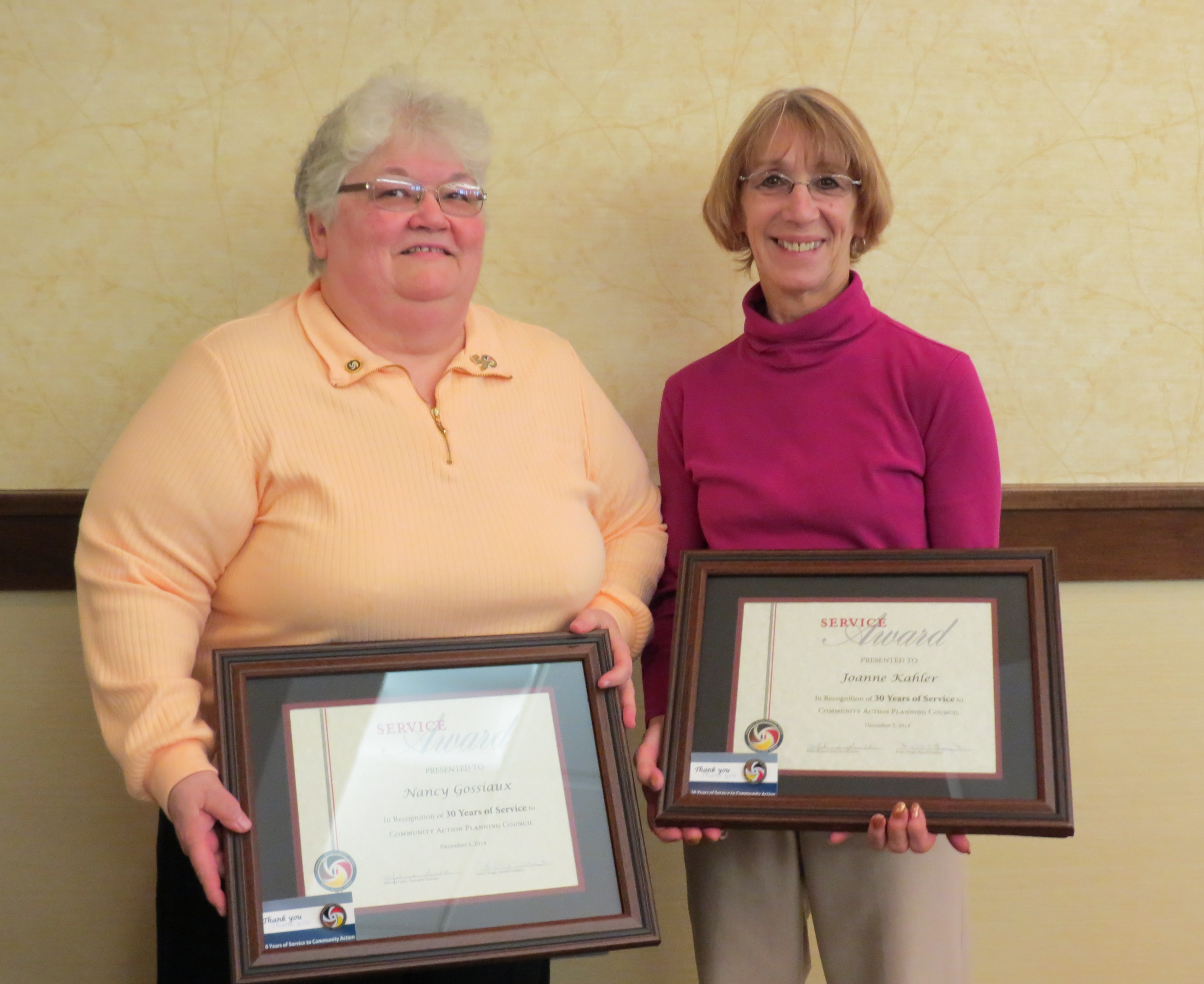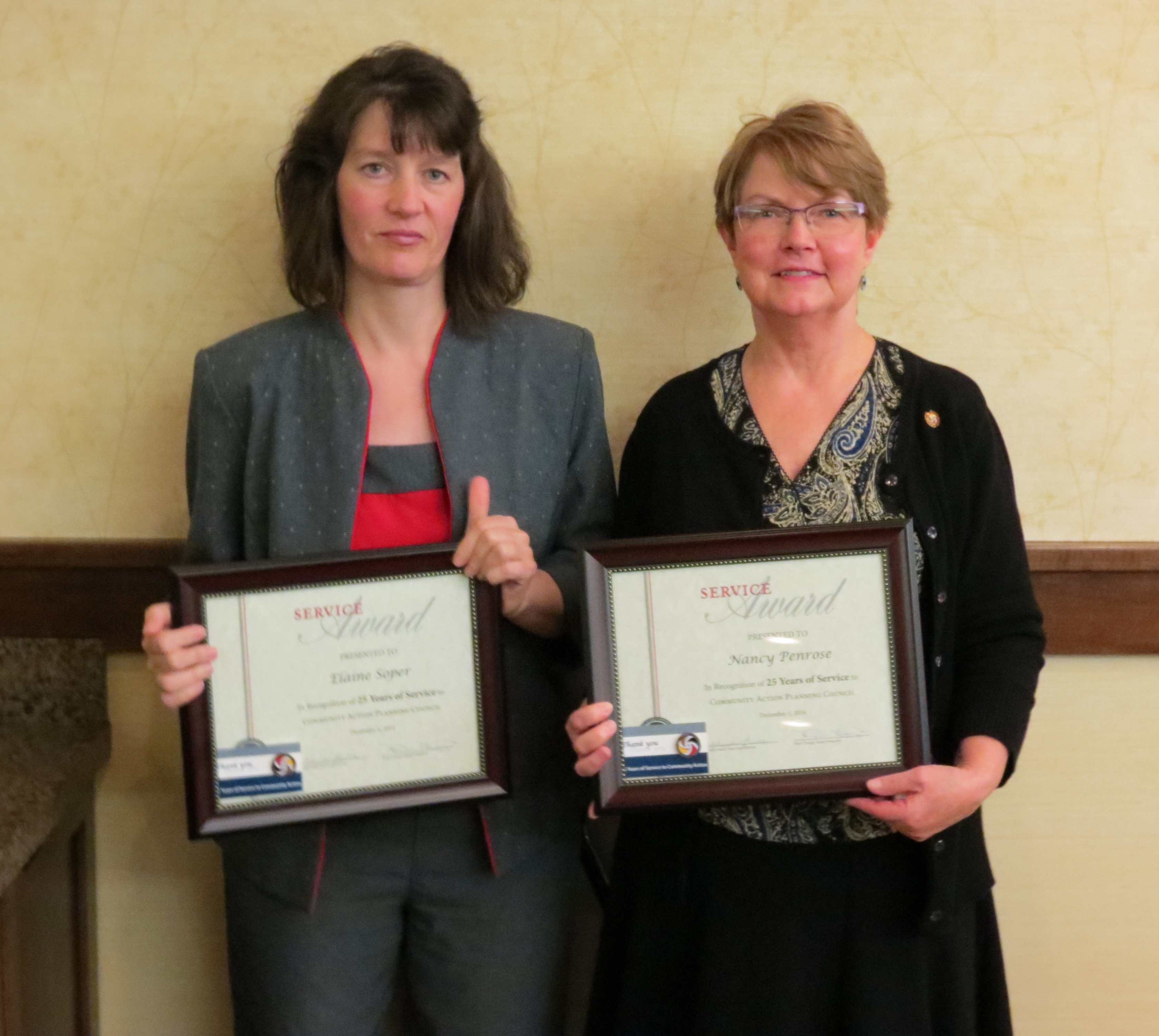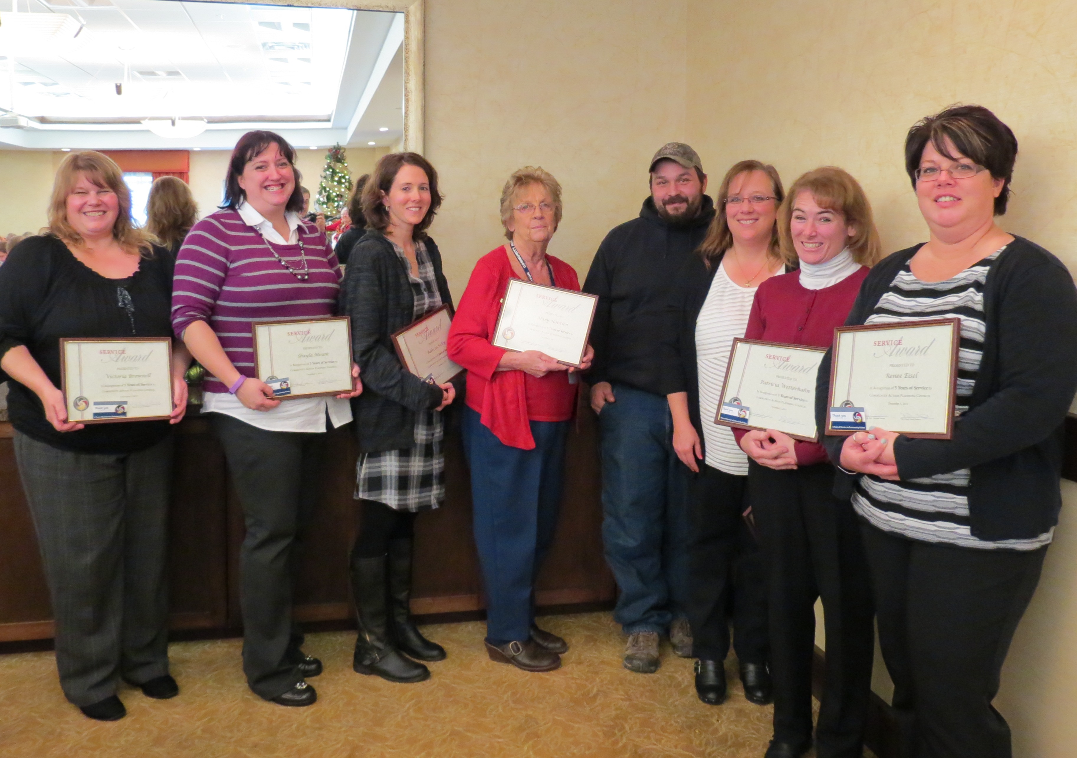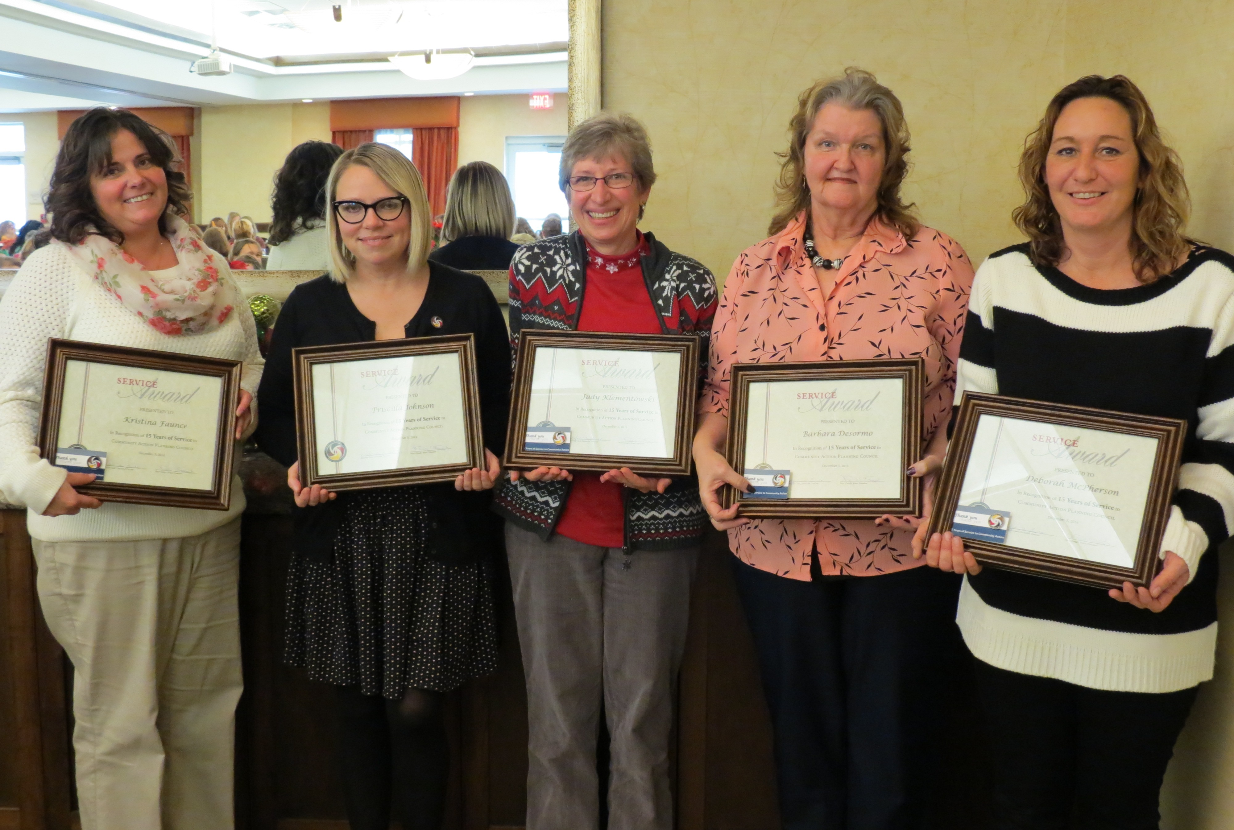 Community Action Planning Council recognized staff and board members for years of service during a special celebration on December 5. Board members Andrea Kaler (5 years), Nancy Brown and Anne Thomas (10 years) were honored, along with 21 staff members who celebrated milestone anniversaries in 2014.