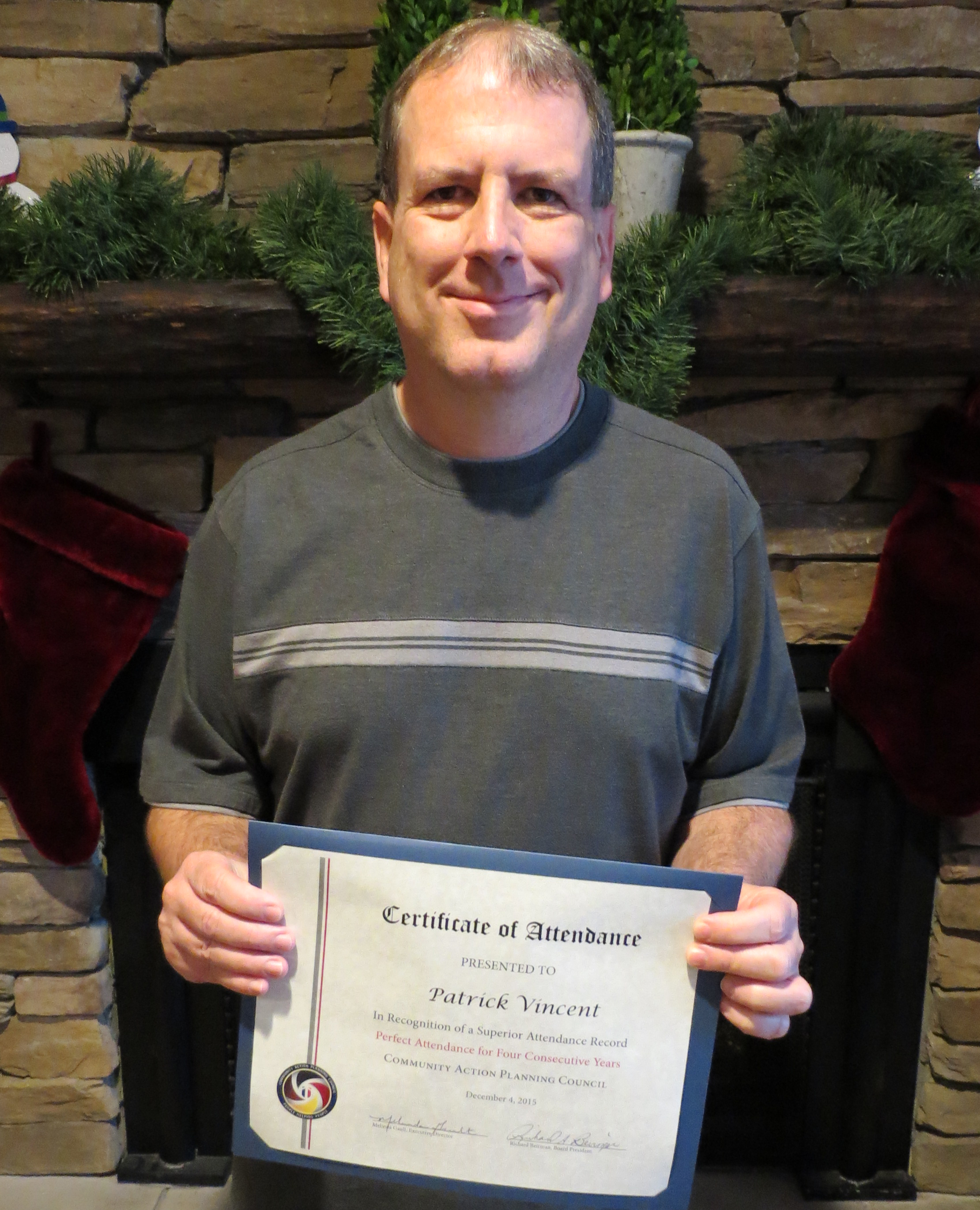 Patrick Vincent Perfect Attendance 4 YrsPatrick Vincent was recognized for 4 consecutive years of perfect attendance.